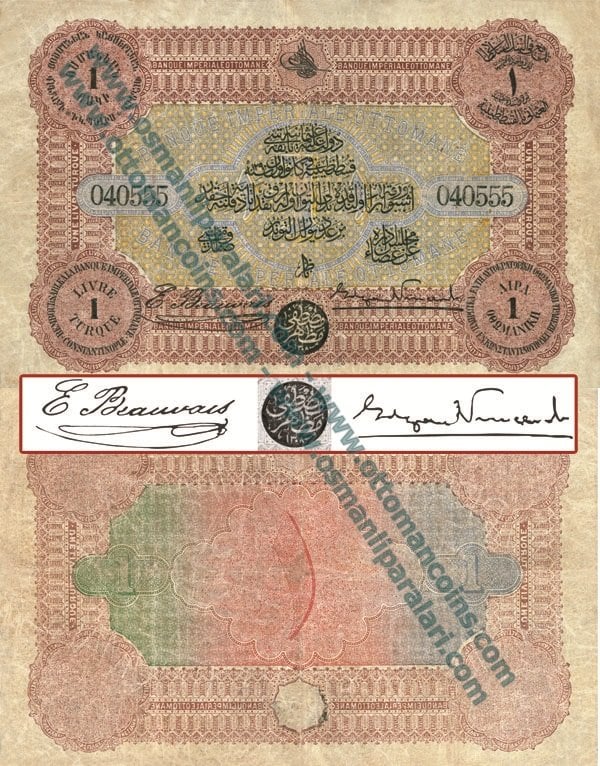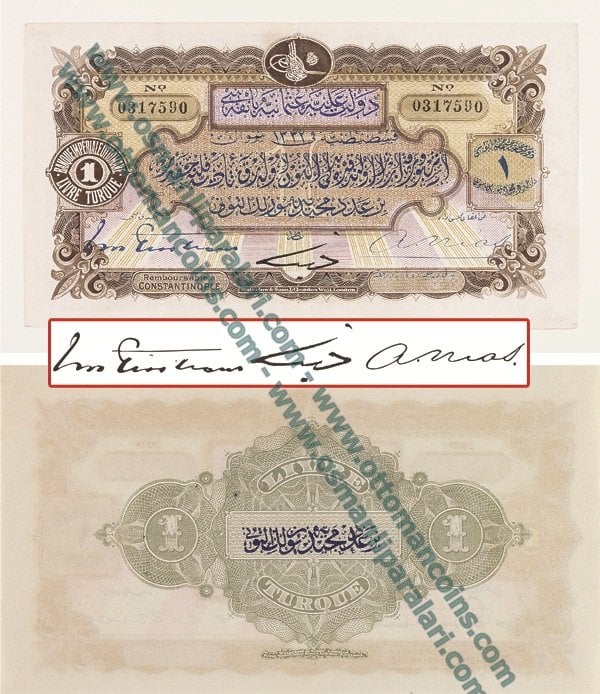 | Şevval 1332 tarihli 1 Liralar basılıp tedavüle verilene kadar olan sürede kullanılması amacıyla ile basıl acil durum paralarıdır. Kasa makbuzlarınn arkasına basılmış ve yedi ay içinde piyasadan toplanmıştır. | ||||||||||