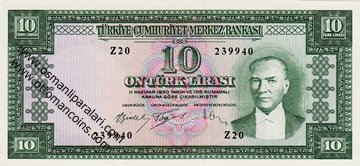 | 10 Lira (5.Emisyon / 6.Tertip 1963) | |||||||
