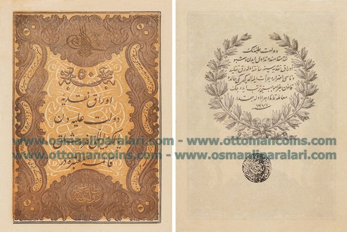 | 50 Kuruş (6 satır) | µ | M.Tevfik | 131x182 | 3000 | 3000 | 3000 | 3000 $ |