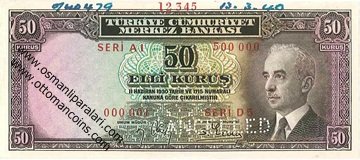 | 50 Lira (2.Emisyon Tedavüle verilmedi 1941) | |||||||