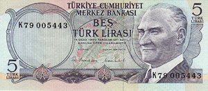 | 5 Lira (6.Emisyon / 1.Tertip 1968) | |||||||