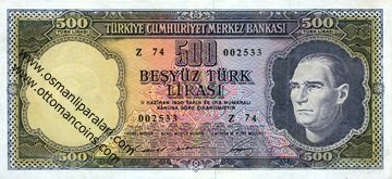 | 500 Lira (5.Emisyon / 4.Tertip 1968) | |||||||