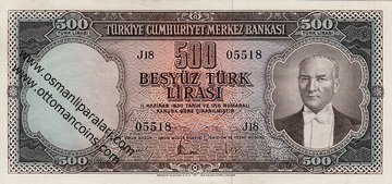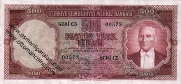 | 500 Lira (5.Emisyon / 1.Tertip 1953) | |||||||