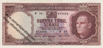 | 500 Lira (5.Emisyon / 3.Tertip 1962) | |||||||