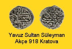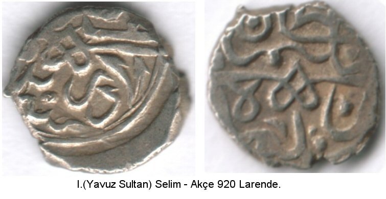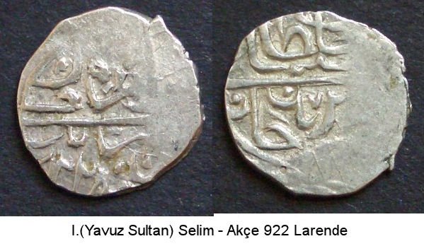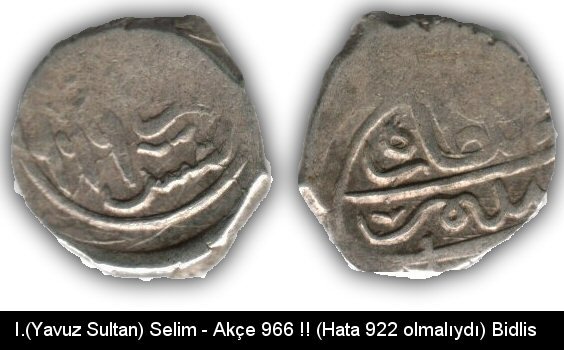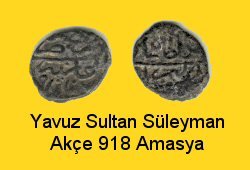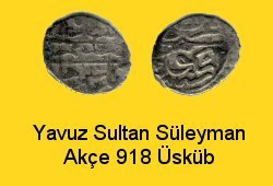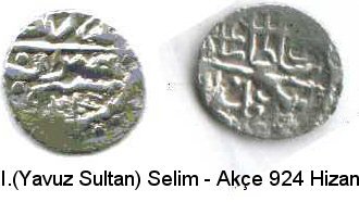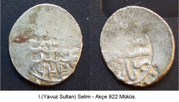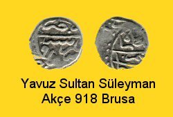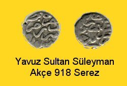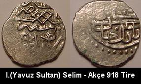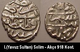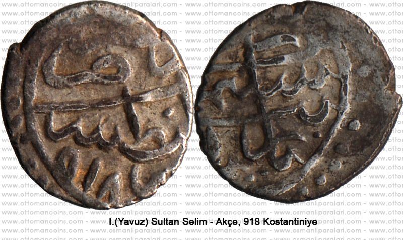 | 1) (OBV) Sultan/Selim/Şah/bin/Bayezid Han. (REV) Nasrühü/azze duri be/ sene Kostantiniye /918 | ||||||||