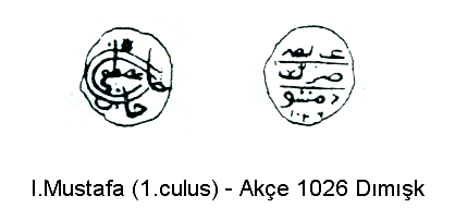 | 2) (Obv) Mustafa bin Mehmed Han. (Rev) Azze nasara darebe Dımışk 1026 | ||||||||