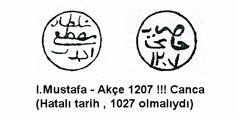 | 1) Tarih hatalıdır / Date error. (Obv) : Sultan Mustafa bin Mehmed. (Rev) Darebe Canca 1207 | ||||||||