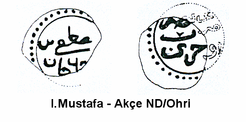 | 4) (Obv)Sultan Mustafa bin Mehmed Han. (Rev) Azze nasara darebe Ohri 1027 | ||||||||