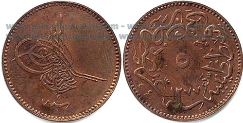 | Abdülaziz | Kostantiniye | 5 Para (Cu) | |||