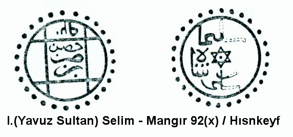 | 3) (OBV) duri be Hısnkeyf/92. (REV) Süleyman Şah bin Selim. | ||||||||