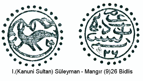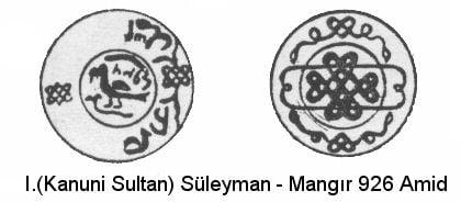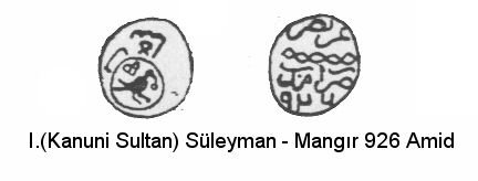 | 2) Kuş figürüe / Bird figure. (Obv) Sultan Süleyman Şah. (Rev) azze nasara darebe Amşd sene 926 | ||||||||