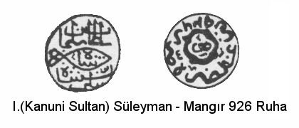 | 3) Balık figürüe / Fish figure. (Obv) Sultan Süleyman Şah bin Selim Han. (Rev) azze nasara darebe Ruha bi sene 926. | ||||||||